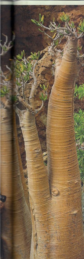 Un adenium socotranum gigante dal tronco arancione,nello Yemen.